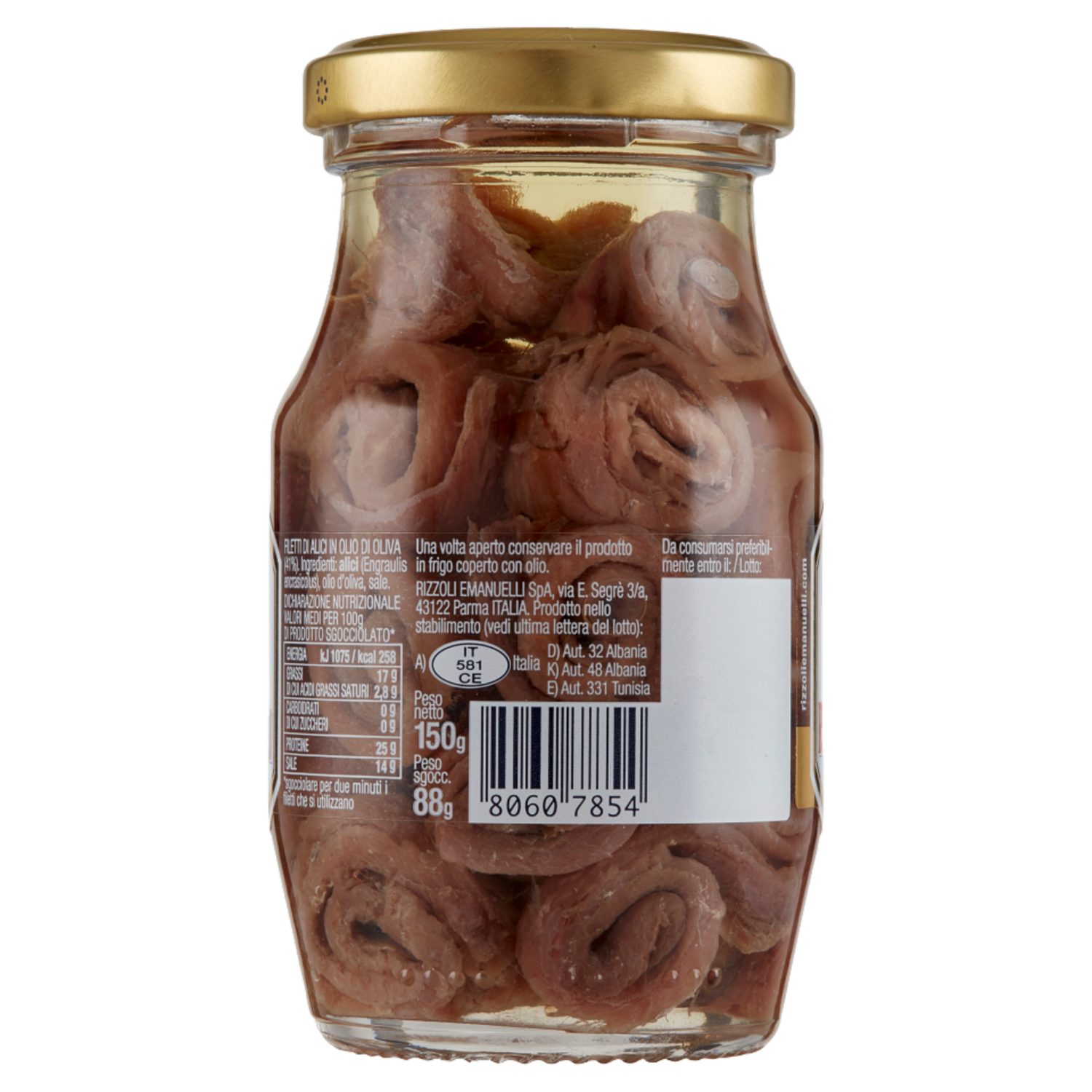 Rizzoli Filetti di Alici in olio di oliva Arrotolate 150 g