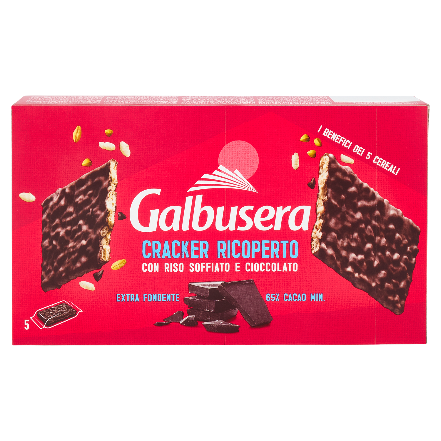Galbusera Cracker Ricoperto con Riso Soffiato e Cioccolato Extra Fondente 5 x 30 g